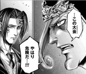 どうもここまでの試合をみて感ずるところがあったようで、この大会は言わば蟲毒のようなものであり強者との闘いを乗り越えた神はより力を得て強大になっていくのだとか。