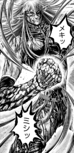 この両者が一体どう戦うのか気になりますけども、誰しも脳裏に浮かんじゃうのは左右真っ二つにする展開ではあるまいか…そんでもってアフラさんとマズダーさんの2柱vs村正なんて事になったりして。