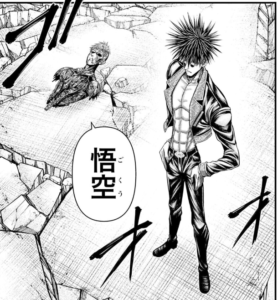 悟空の元へ吹っ飛ばされたのか、それとも悟空が労いにやってきたのかは定かではありませぬ。
