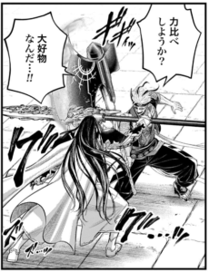 鍔迫り状態になった時に金ちゃんらしいセリフが飛び出てきましたね。